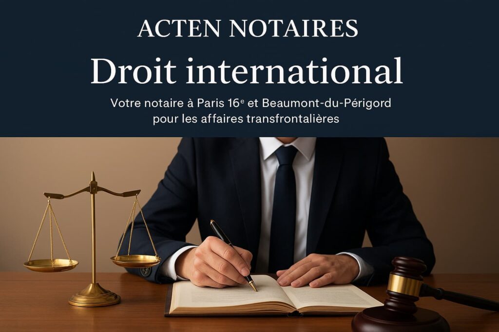 Chez ACTEN NOTAIRES, nous accompagnons nos clients dans toutes les problématiques liées au droit international privé et aux successions transfrontalières internationales. Nos études de Paris 16ᵉ et de Beaumont-du-Périgord (Dordogne) sont spécialisées dans les dossiers nécessitant une expertise internationale.